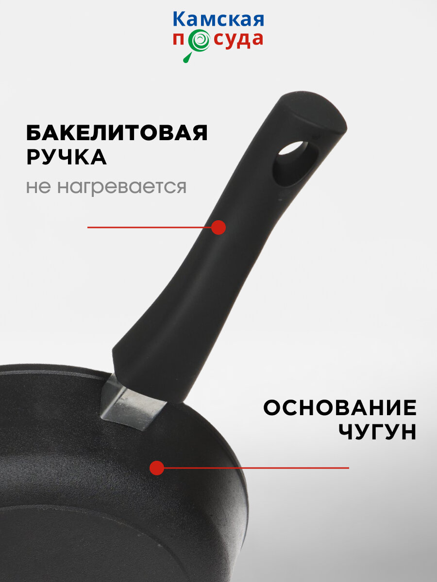 Камская посуда Сковорода из чугуна 26 см, съемная ручка, индукция