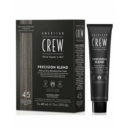 Уникальная краска разработана специально для быстрого и удобного камуфляжа седины у мужчин. Обеспечивает сохранение цвета до 4-6 недель (24 мытья головы). Проста в использовании и нанесении. Тон без металлических оттенков. Время выдержки - 5 минут. Нет резкого контраста с неокрашенной частью.Выберите оттенок краски Precision Blend, наиболее схожий с вашим естественным цветом волос. Смешайте биоактиватор Precision Blend 4,5% с краской в пропорции 1:1. Для коротких волос достаточно 10 мл активатора и 10 мл краски.Далее в зависимости от ожидаемого результата, нанесите средство на волосы.Смягчение (25% покрытия седины): Краска наносится на волосы с помощью спонжа путем «промакивания» им волос. Данная техника помогает убрать желтизну, придавая волосам благородный оттенок. Скрадывание (50% покрытия седины): Краска наносится на волосы с помощью щеточки для окрашивания. Придает волосам есстественный оттенок, подчеркивает текстуру.Приглушение (75% покрытия седины): Краска наносится на волосы с помощью специальной трехрядной расчески. Придает волосам равномерный оттенок и интенсивный живой блеск.Покрытие (100% закрашивание седины): Краска наносится с помощью кисти для окрашивания волос, что позволяет тщательно прокрасить волосы и избавиться от седины.