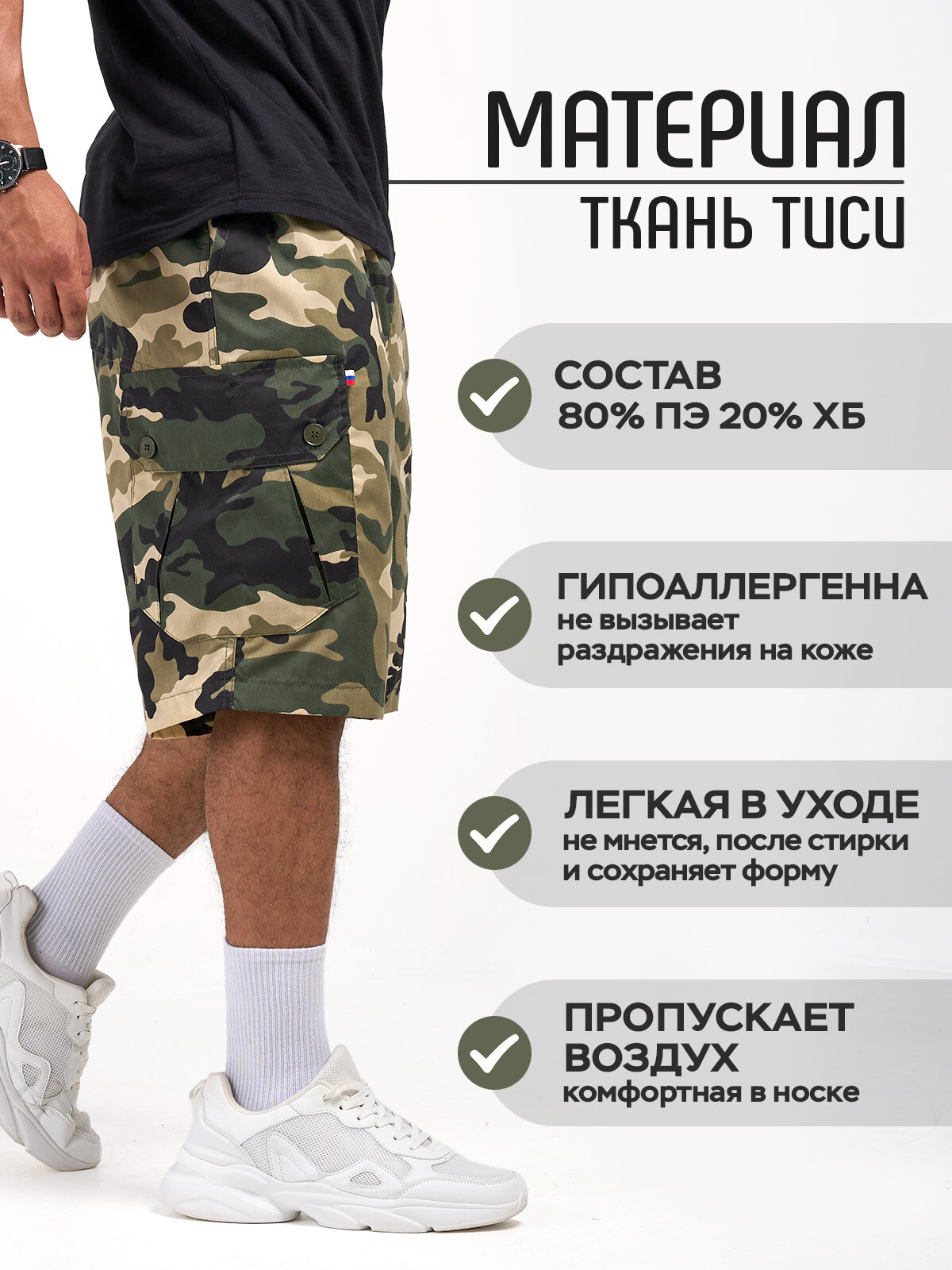Идеально подходящие для активного образа жизни, камуфляжные шорты карго в стиле милитари станут вашим надежным спутником в любых ситуациях. Камуфляжный рисунок зеленый камыш отлично дополнит ваш образ. Независимо от того, участвуете ли вы в тактических тренировках, активно посвятили себя бегу, или ищете стильное дополнение к повседневному гардеробу, эти шорты обеспечат комфорт и функциональность. Изготовленные из высококачественных материалов, таких как вискоза или тиси, они гарантируют долговечность и удобство носки, что делает их идеальным выбором для долгих прогулок, интенсивных тренировок и повседневного использования. Продуманный дизайн с вместительными карманами поможет вам держать под рукой все необходимые предметы, будь то телефон, ключи или другое снаряжение. Вдохновленные военным стилем, камуфляжные шорты подчеркнут вашу индивидуальность и добавят нотку мужественности в любой ваш образ. Шорты карго подходят как для подростков, так и для мужчин, благодаря универсальному размерному ряду и широкой линейке моделей. Надев эти шорты, вы ощутите свободу движений и уверенность, потому что они созданы для тех, кто живет на полную катушку. Воплотите свой стиль и проявите свою активность, выбирая шорты для бега и повседневной носки из коллекции камуфляжной одежды. Независимо от вашего вида деятельности, камуфляжные шорты подчеркнут ваш динамичный стиль жизни и станут незаменимым элементом вашего гардероба.