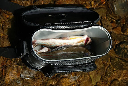 - Благодаря автоматическим шторкам, улов, при переворачивании сумки, останется в ней.