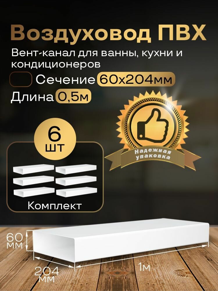 Комплект состоит из 6 шт В различных помещениях, как жилых, так и коммерческих, эффективной системой для создания и подключения вытяжного оборудования, таких как кухонные вытяжки, является пластиковая вентиляционная система, основанная на каналах прямоугольного сечения 60 х 204 мм и круглых воздуховодах диаметром 100 мм. Для создания системы из плоских вентиляционных каналов используется ПВХ, который обеспечивает надежность, а также эстетически приятный внешний вид в помещениях с завершенным ремонтом.
