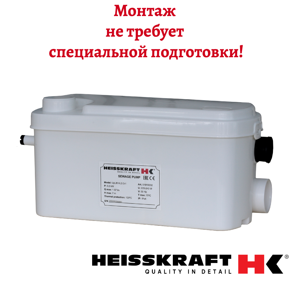 Купить Канализационная установка Heisskraft UpLift HLS 3-1, 0.2 кВт, 1×230 В, 1.5 A, кабель 1.8 м с доставкой по всей России. Канализационная установка Heisskraft UpLift HLS 3-1, 0.2 кВт, 1×230 В, 1.5 A, кабель 1.8 м: сравнение цен, характеристики, фото, актуальное наличие и цены.