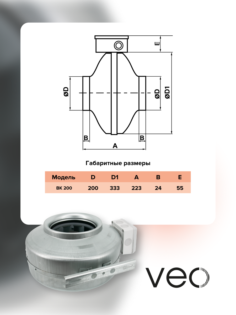 Канальный приточно-вытяжной вентилятор BK 200 центробежный, диаметр 200 мм, 935 м3/ч, 144 Вт, оцинкованная сталь, VEO: сравнение цен, характеристики, фото, актуальное наличие и цены.