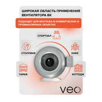 Купить Канальный приточно-вытяжной вентилятор BK 250 центробежный, диаметр 250 мм, 1020 м3/ч, 177 Вт, оцинкованная сталь, VEO с доставкой по всей России.