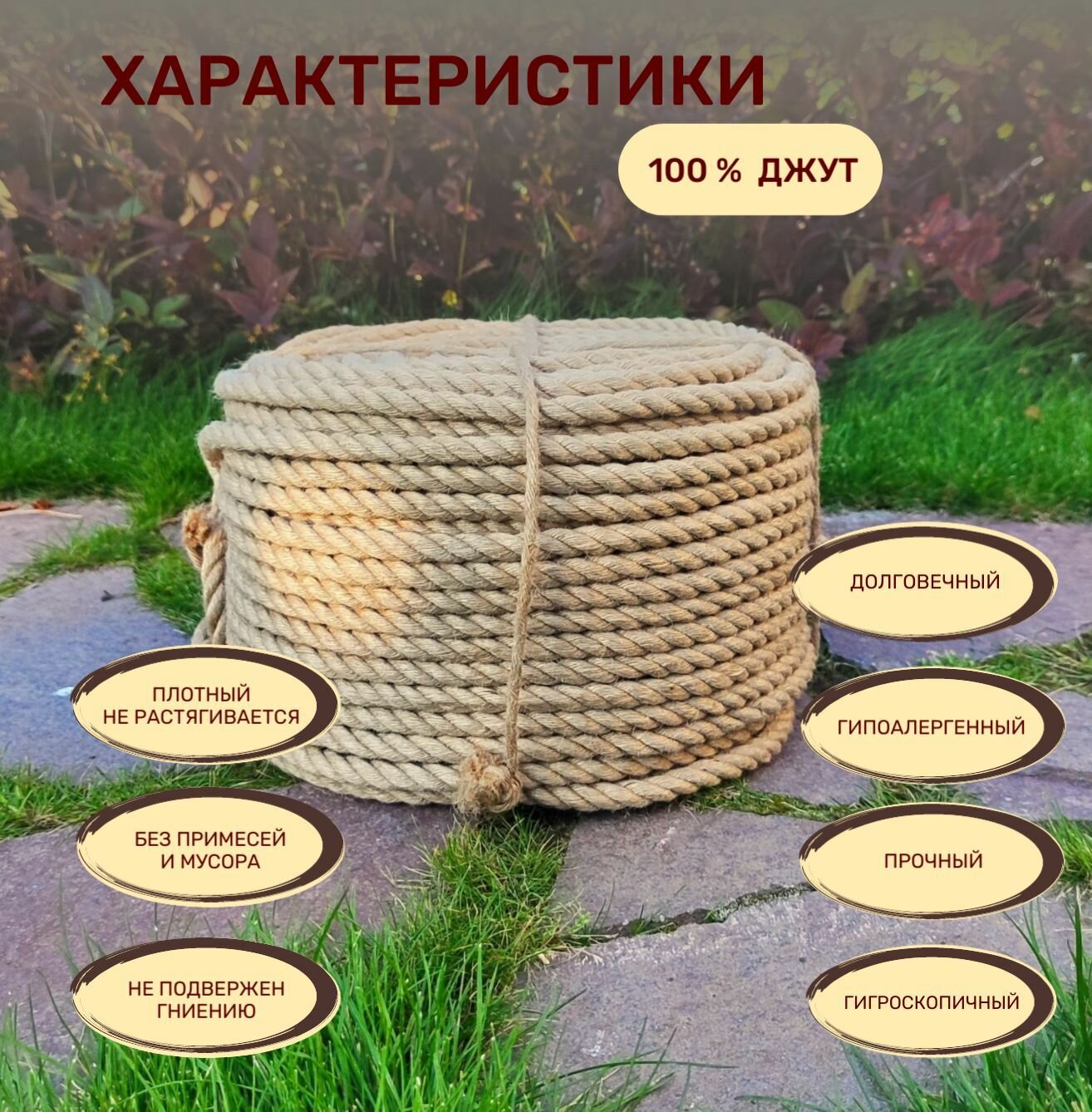 Канат из джута диаметром 16 мм 50 метров - это надежный и многофункциональный материал, который идеально подходит для использования в различных сферах.