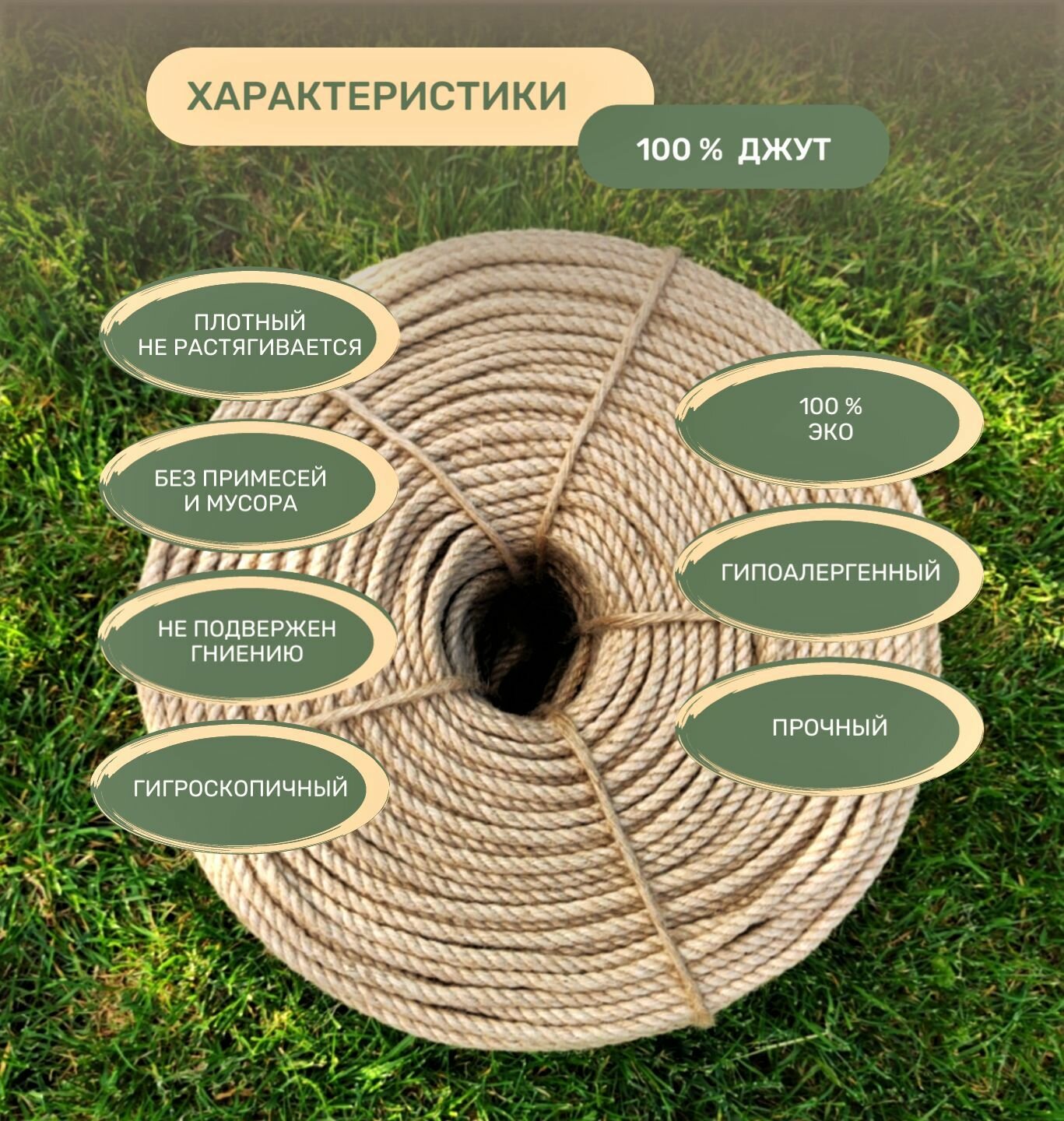 Этот канат изготовлен из 100% натурального волокна джута, что делает его экологически безопасным и дружественным к окружающей среде.