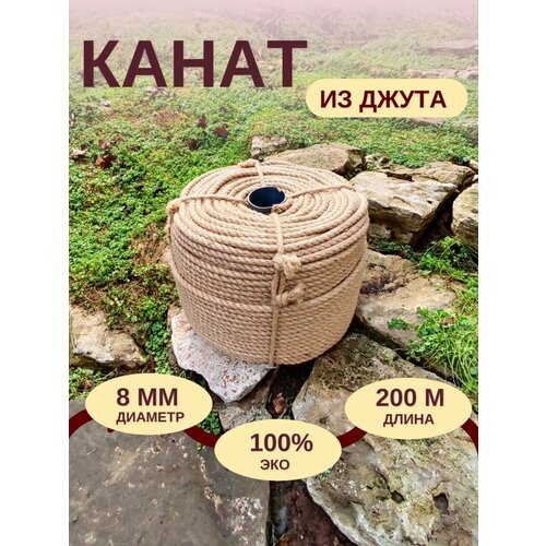 Экологичный джутовый канат диаметром 8 мм 200 метров - идеальное решение для всех ваших творческих проектов и декора!