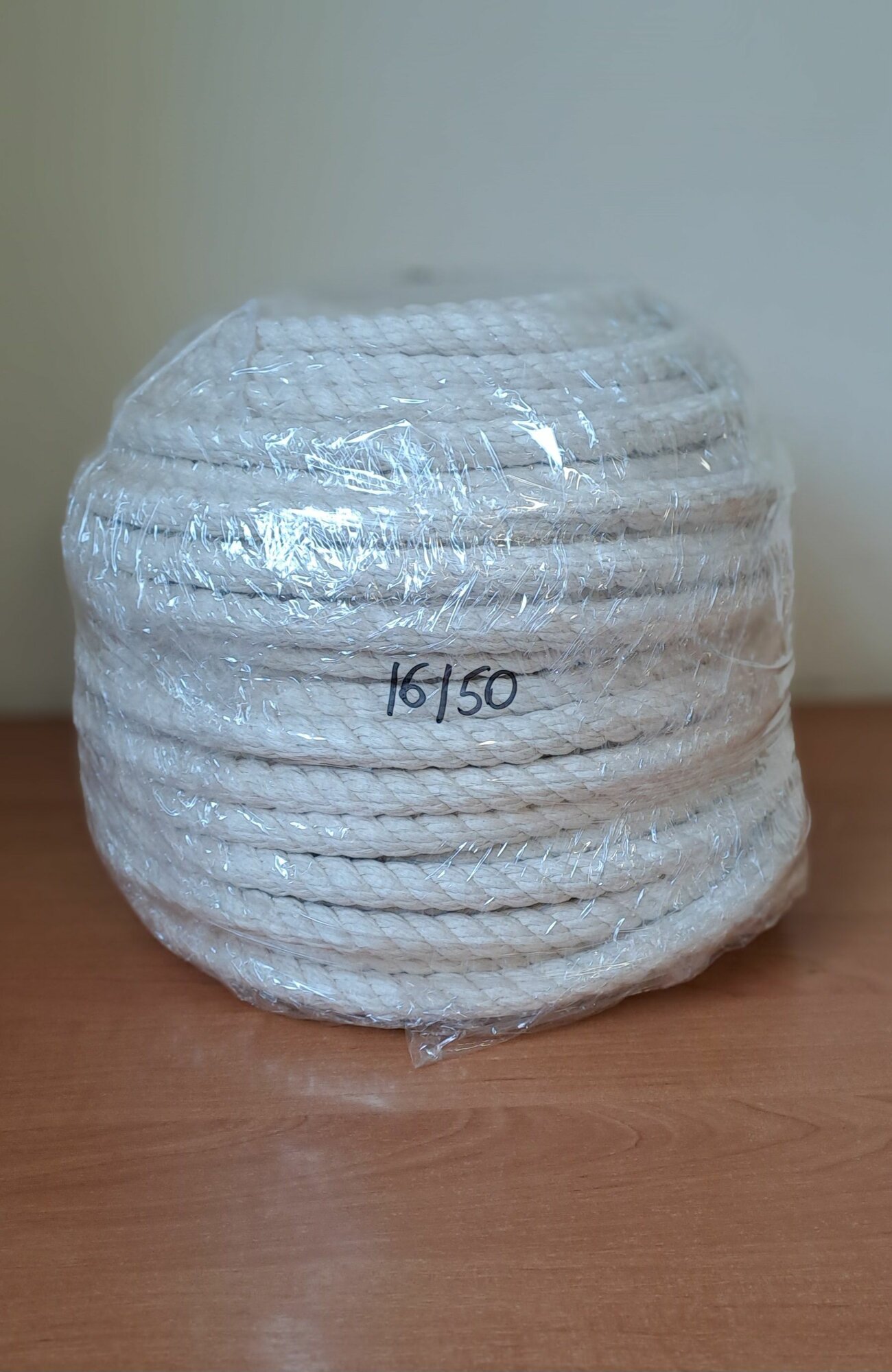 Канат хлопчатобумажный 3-х прядный крученый "Double Twist". Диаметр каната d-16 мм, окружность 50 мм, ориентировочно 7,05 метра в килограмме. Разрывная нагрузка каната 930 кгс. В связи с особенностями технологии производства, на изделии могут встречаться места скрутки пряжи, которые выходят из тела каната (узелки на канате). Данная особенность не является браком! Внимание! Канат перематывается в растянутом состоянии, возможен толеранс +- 5%!