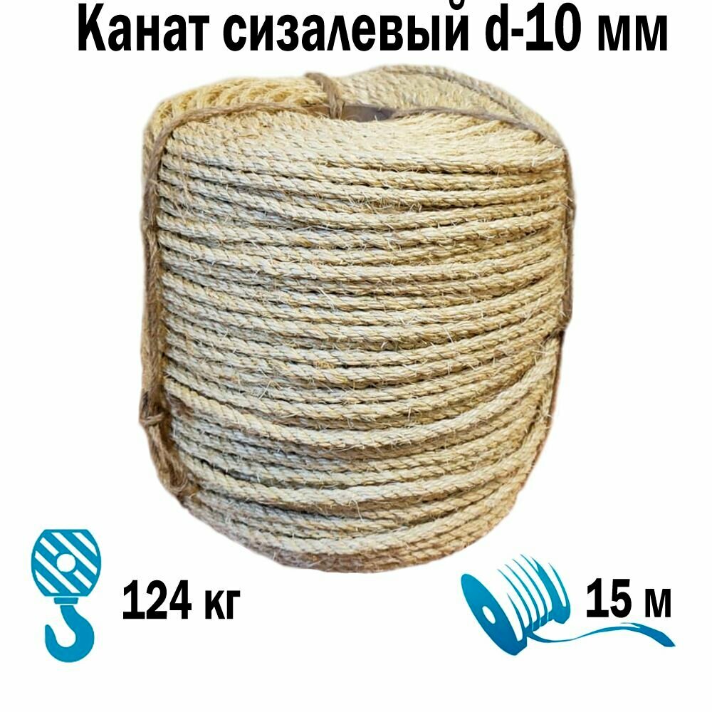 Канат сизалевый 3-х прядный d-10 мм моток 15 м «Мир Шнура»: сравнение цен, характеристики, фото, актуальное наличие и цены.