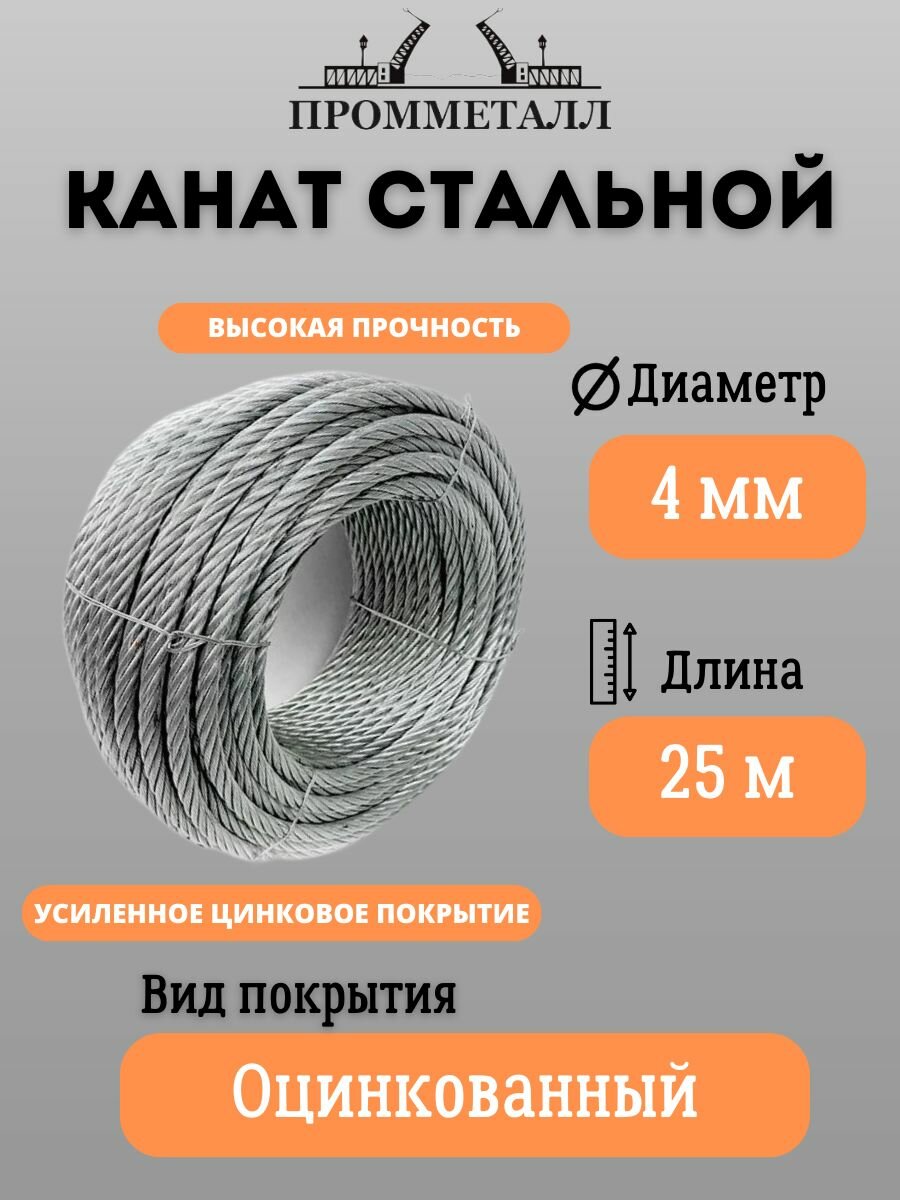 Купить Канат стальной ф 4 мм. 25 м. пог. оцинкованный с доставкой по всей России. Канат стальной ф 4 мм. 25 м. пог. оцинкованный: сравнение цен, характеристики, фото, актуальное наличие и цены.