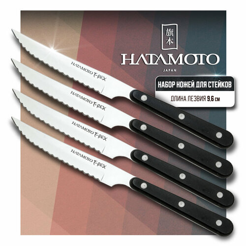 Набор Ножей для стейков 4 шт. Hatamoto (1202-4), длина лезвия 9,5 см, заточка серрейтор Япония: сравнение цен, характеристики, фото, актуальное наличие и цены.
