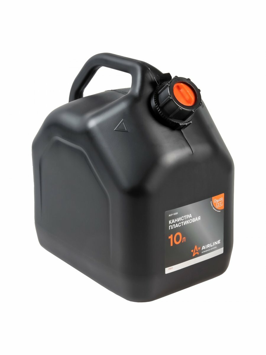 Пластиковая канистра ACF-10SK бренда AIRLINE PRO объемом 10 л - автомобильный аксессуар, PROseries относится к премиум сегменту, особая форма канистры позволяет использовать её не только для хранения и перевозки ГСМ, но и как основной или дополнительный топливный бак.