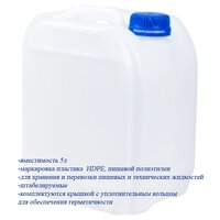 Евроканистра 5 литров – универсальная тара для упаковки, хранения и перевозки воды, широкого спектра пищевых и технических веществ. Подходит для применения в промышленных, коммерческих и бытовых целях. Ёмкость не предназначена для топлива.