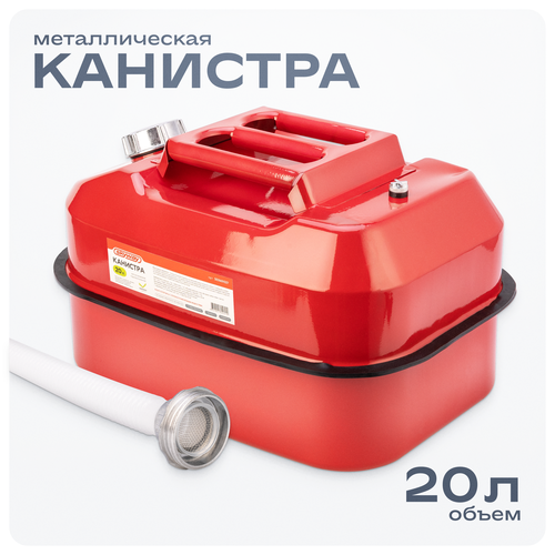 Надежная канистра для бензина: 20 литров горизонтальная от SKYWAY Канистра 20л металлическая горизонтальная SKYWAY идеально подходит для хранения топлива и жидкостей при любых условиях эксплуатации. Особенности: Прочный материал: Изготовлена из стали холодного проката для высокой прочности и долговечности. Антикоррозийное покрытие: Оцинкованная внешняя поверхность и внутреннее покрытие защищают от ржавчины. Устойчивость и безопасность: Горизонтальная форма предотвращает перемещение в багажнике и снижает шум при транспортировке. Специализированная форма носика: Исключает проливание жидкости при наливе и сливе. Удобная комплектация: Встроенная металлическая сеточка для очистки жидкости и пластиковая трубка-лейка для удобства наполнения. Регулировочный клапан: Обеспечивает выравнивание давления и предотвращает перелив жидкости (система "антибульк"). Технические характеристики: Тип: Горизонтальная Материал: Сталь Размеры: 432926 см Объем: 20 л Вес: 2,85 кг Длина шланга: 35 см Приобретите канистру SKYWAY прямо сейчас и оцените ее высокое качество и удобство в использовании! Этот выбор подарит вам надежность в каждом путешествии и эксплуатации.