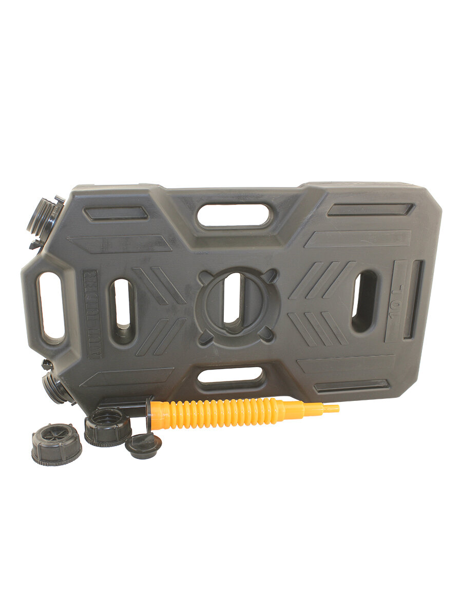 Канистра на 10 литров отлично подходит для транспортировки благодаря своей удобной плоской форме. Поместится в любом автомобиле или квадроцикле. Со всех сторон у канистры есть специальные ручки, что позволяет брать её из любого положения и не марать при этом руки. Имеются 3 отверстия для крепежа.
