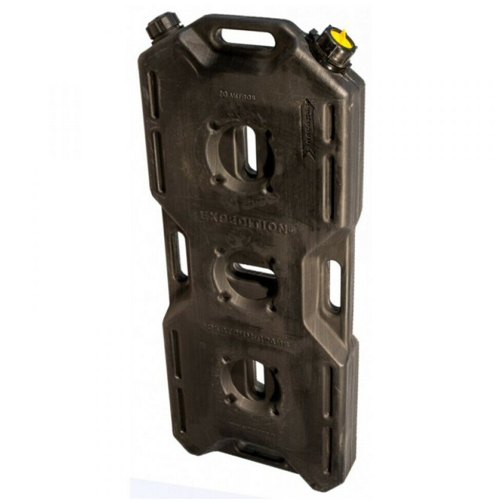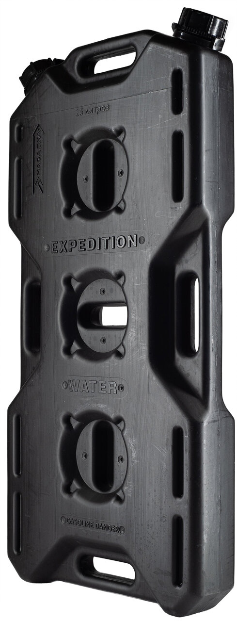 Плоская канистра изготовлена из высокоплотного полимера — выдерживает самую жестокую эксплуатацию в экстремальных ситуациях. Благодаря своей необычной форме и габаритам, может быть закреплена практически на любом месте. Имеются удобные ручки для переноски и крепления канистры.