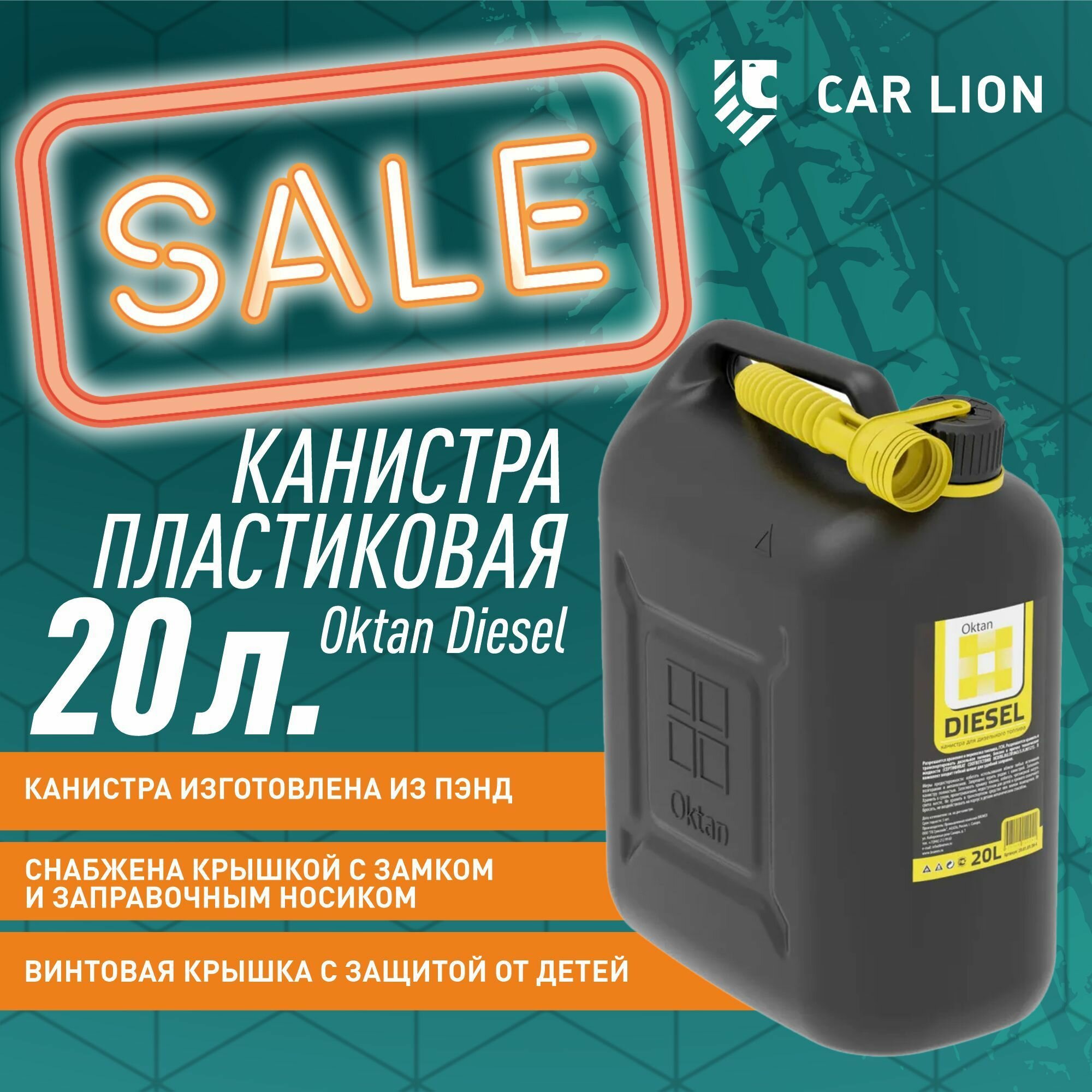 Канистра ГСМ Oktan DIESEL предназначена для хранения и транспортировки дизельного топлива и других горюче-смазочных материалов. Изготовлена из ПЭНД. Снабжена крышкой с замком и заправочным носиком.