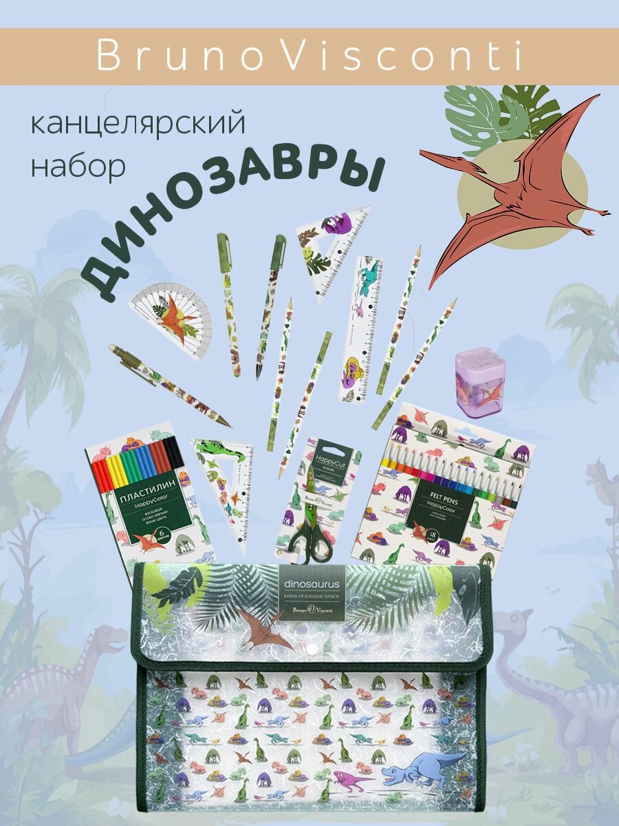 Канцелярский набор Bruno Visconti «динозавры» с папкой на молнии А5+ (26 х 20 см): сравнение цен, характеристики, фото, актуальное наличие и цены.