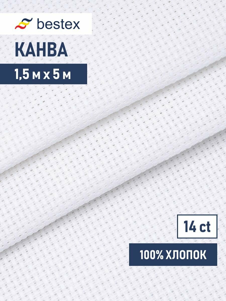 Купить Канва для вышивания Aida 14 каунта, белая, 150см*5м, 100% хлопок, Bestex с доставкой по всей России.