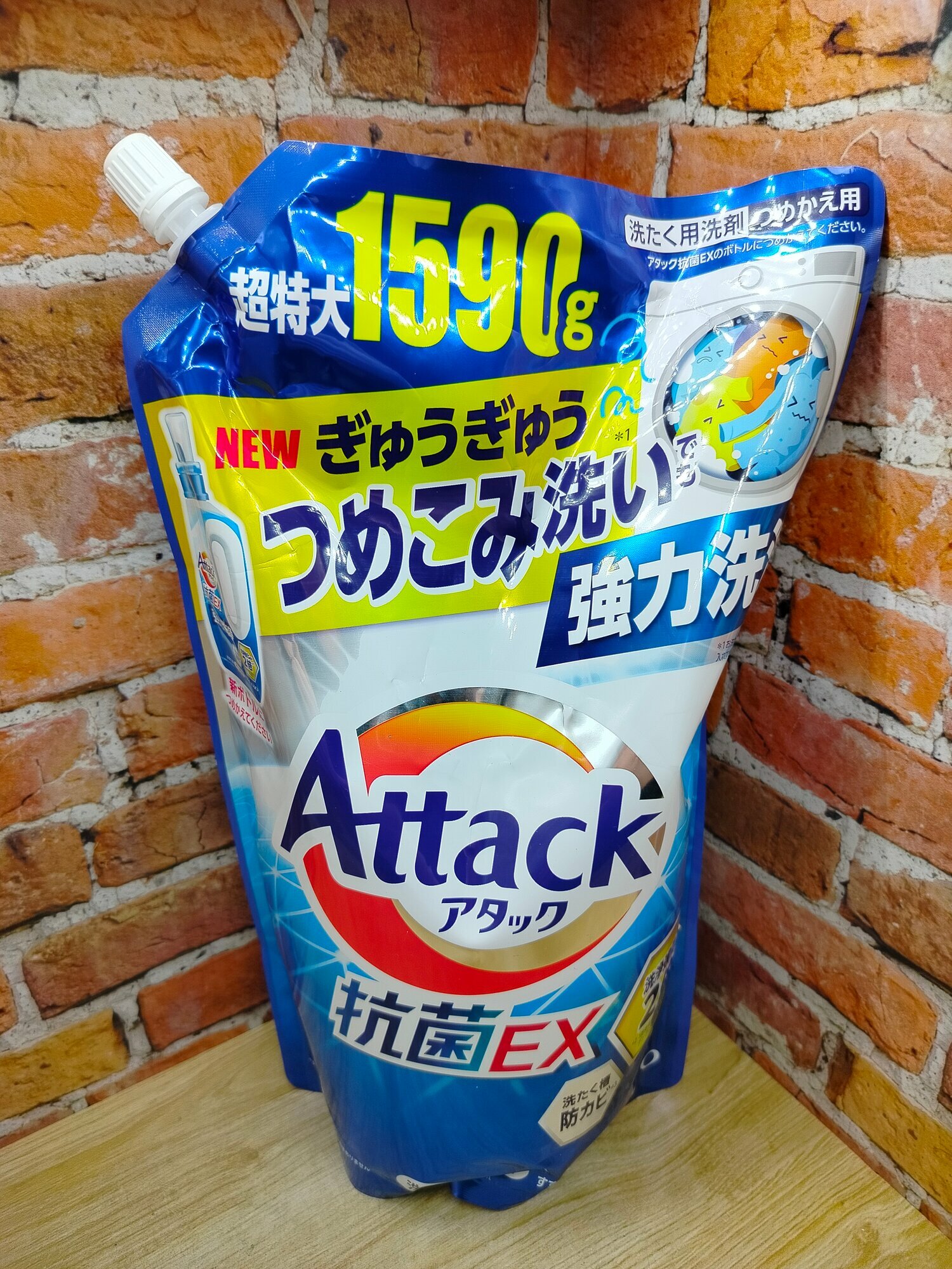 Купить Kao Attack EX Gel Высокоэффективный гель для стирки белья Тройная сила 1590 гр на 53 стирки в мягкой упаковке с доставкой по всей России.