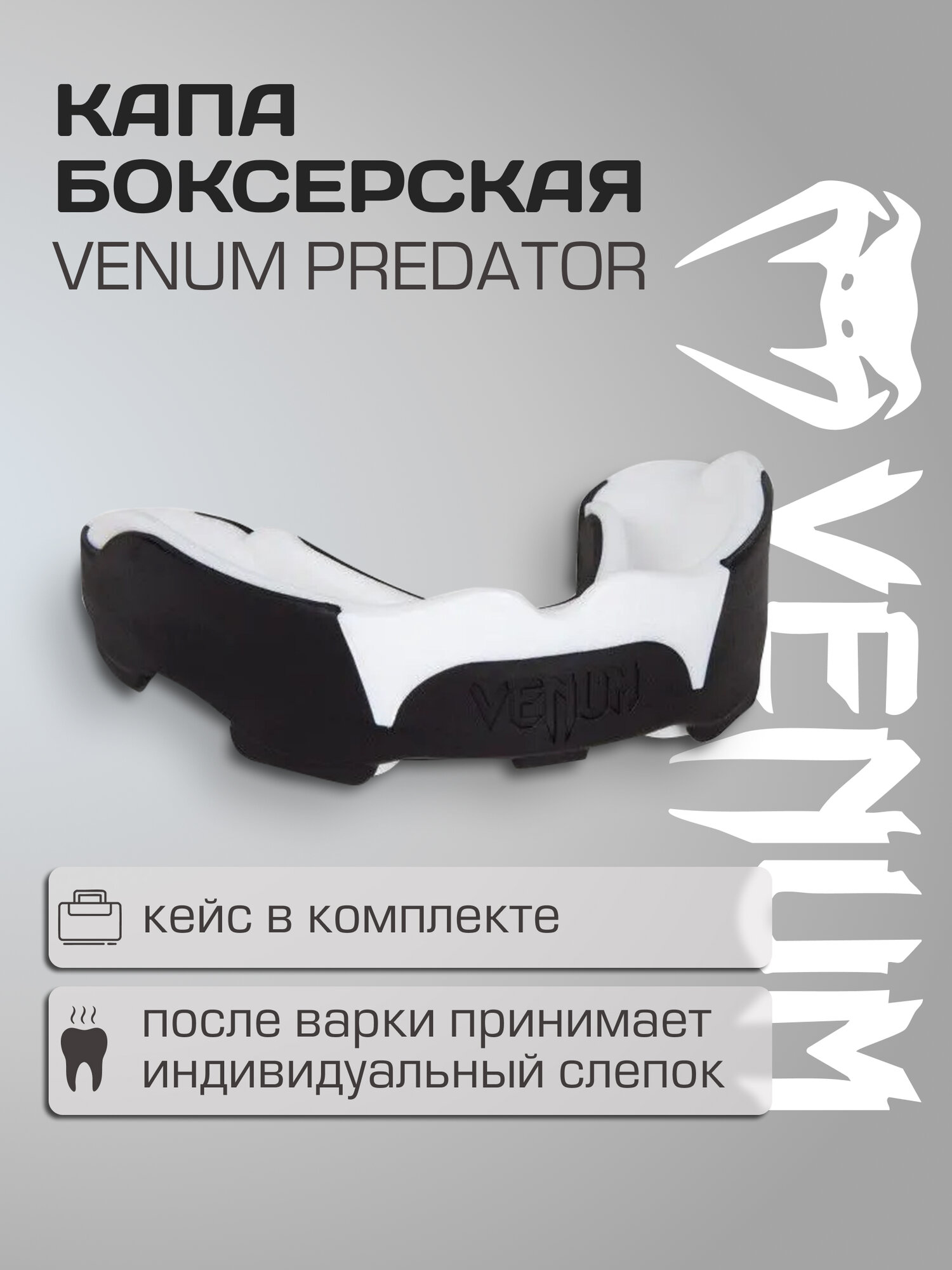 Капа боксерская Venum Predator, черно-белая, Senior, с чехлом, арт. VENUM-0621: сравнение цен, характеристики, фото, актуальное наличие и цены.