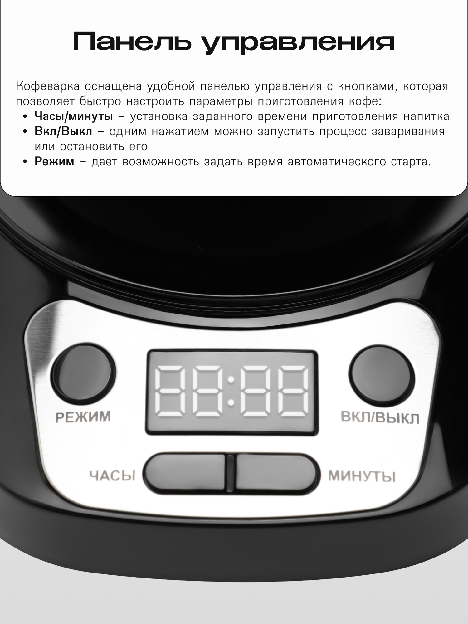 Капельная кофеварка с автозапуском, объем 1.8 литра, мощность 900 Вт, черная: сравнение цен, характеристики, фото, актуальное наличие и цены.