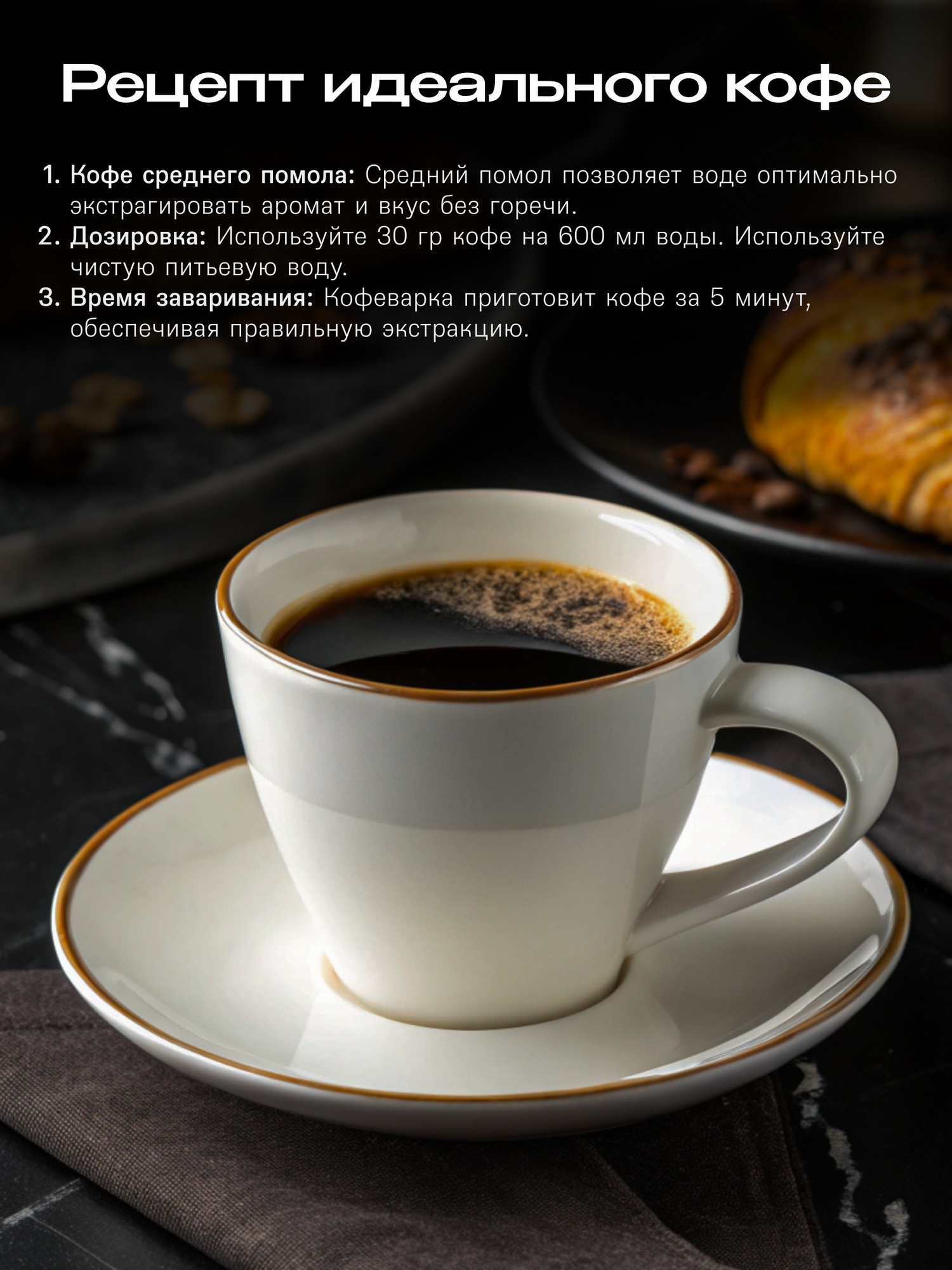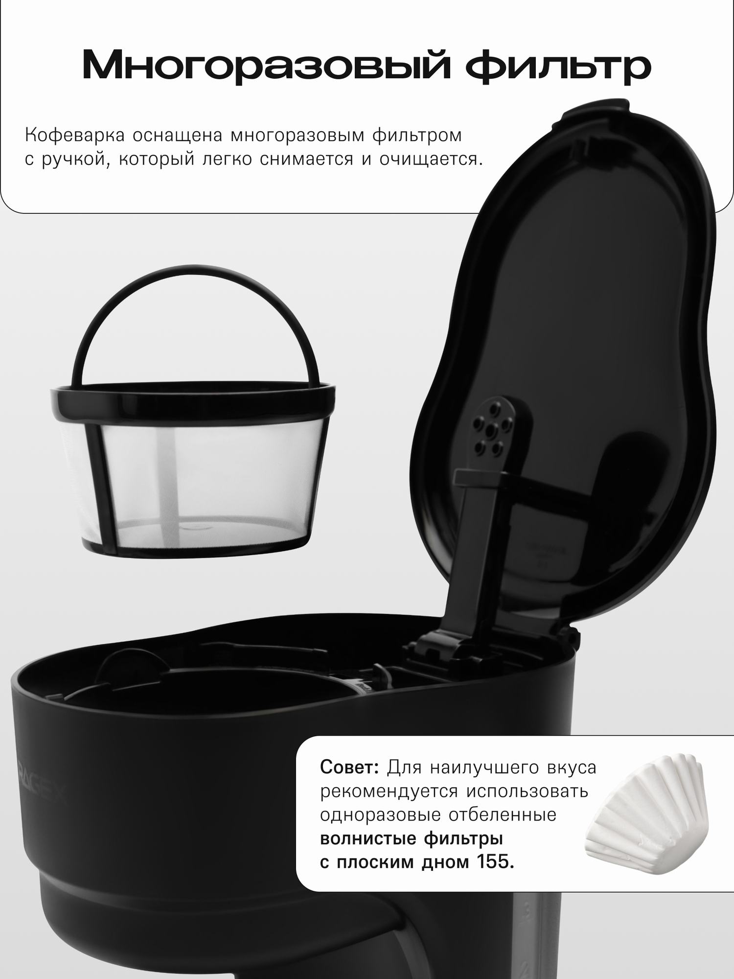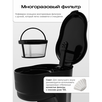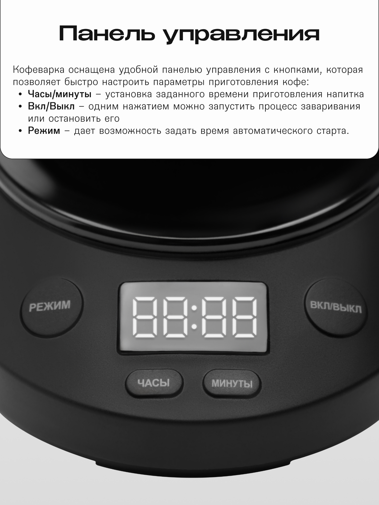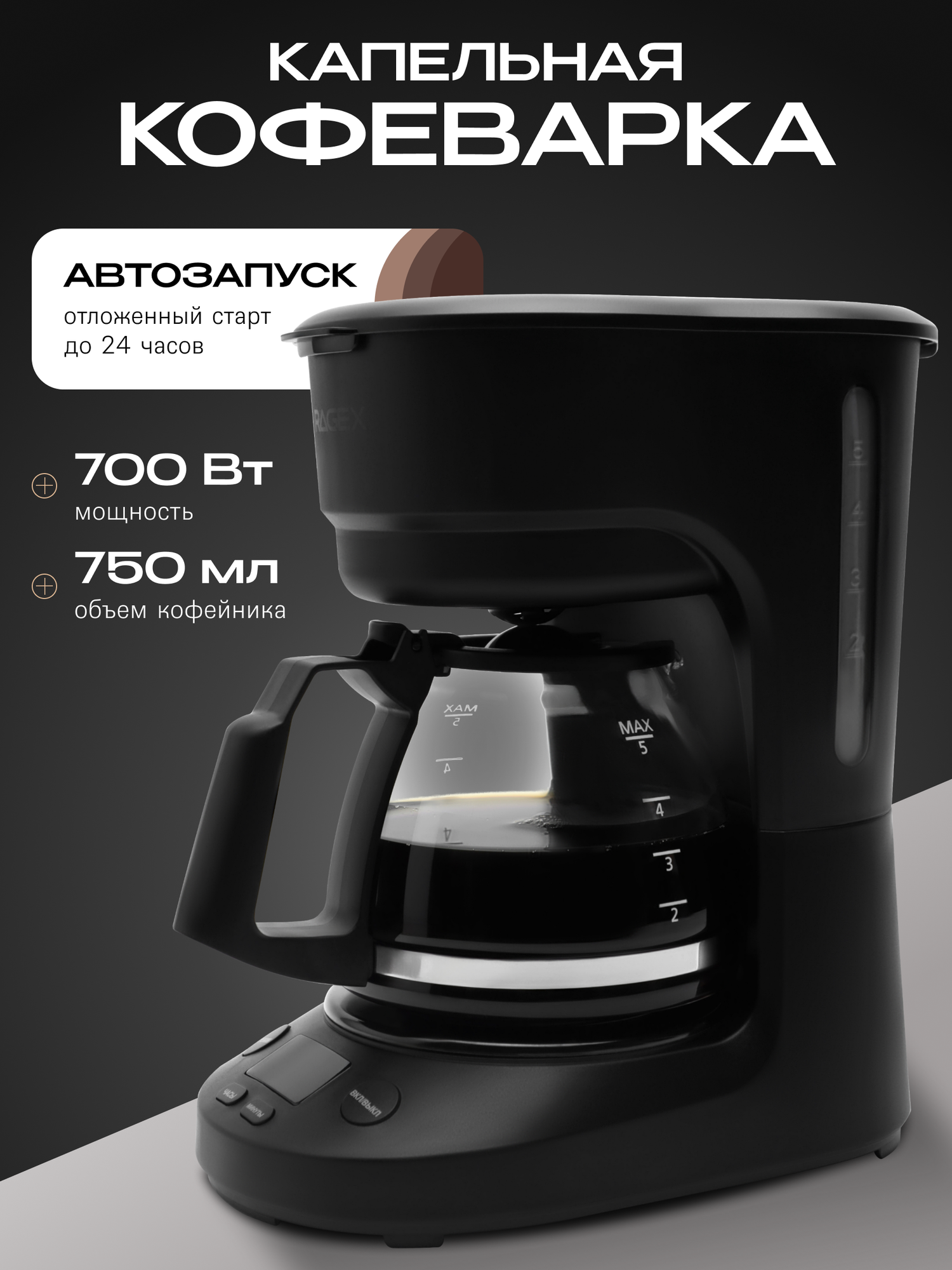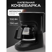 Капельная кофеварка с автозапуском, объем 750 мл, мощность 700 Вт, черная