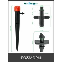 Капельница регулируемая на стойке, 13см, 0-70л/ч (100 шт) В комплекте два вида стартовых адаптеров для каждой капельницы: "Шип-шип", используется при монтаже в шланг или слепую капельную трубку с толщиной стенки до 1.3мм с помощью дырокола. "Шип-резьба" , используется при монтаже в ПНД или полипропиленовую трубу с помощью сверла и шуруповерта. Для того чтобы соединить стартовый адаптер и капельницу на стойке, рекомендуем использовать микротрубку(шланг) ПВХ 4/6мм или 4/7мм, где "4мм" это внутренний диаметр трубки. Трубку можете найти в нашем магазине.
