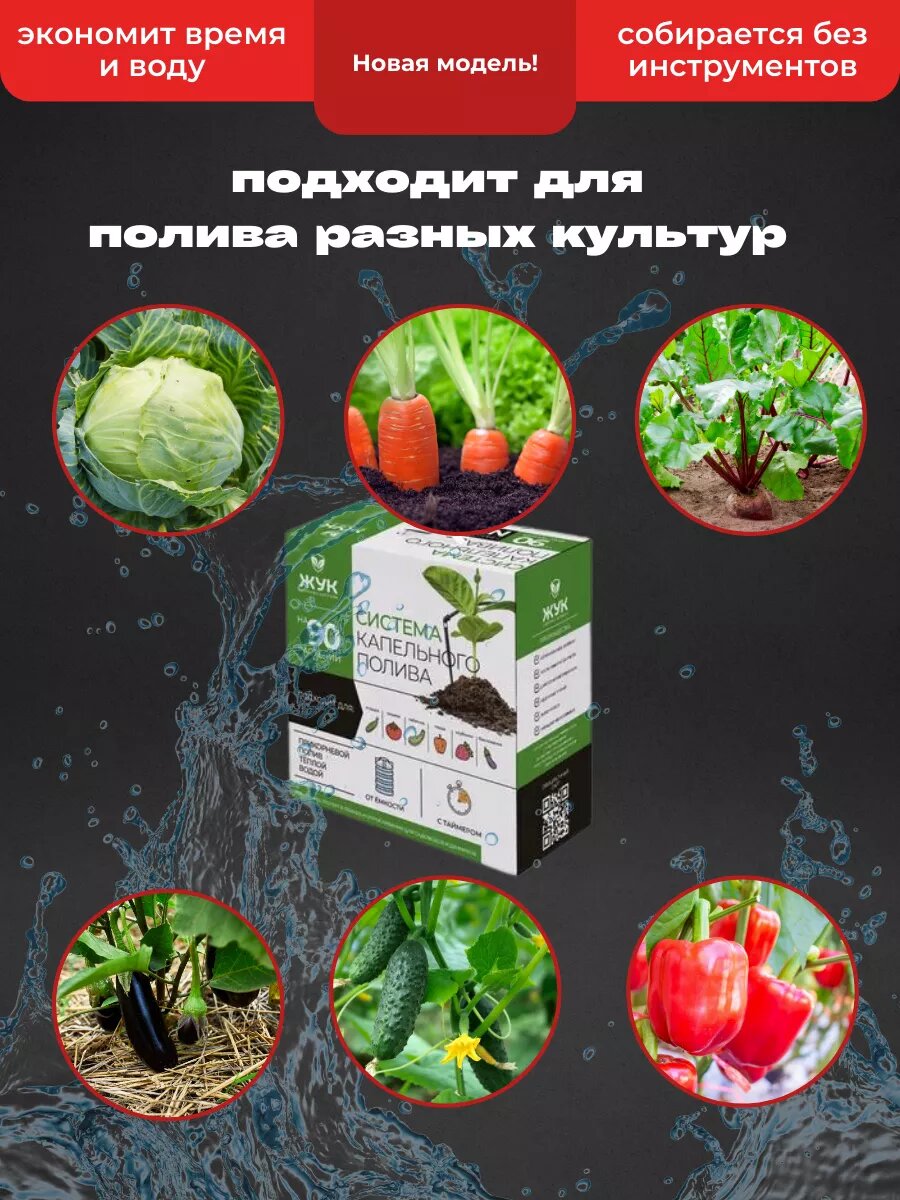 Система капельного полива Жук, 90 растений, таймер, регулировка расхода воды: сравнение цен, характеристики, фото, актуальное наличие и цены.