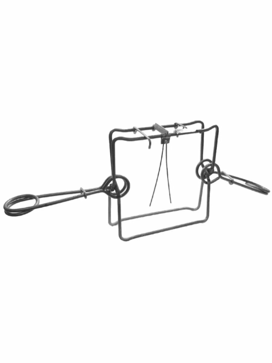 Поверните обе пружины так, чтобы они находились снаружи рамок капкана. Сожмите пружину руками или крюком (продаётся отдельно, либо изготавливается своими руками).