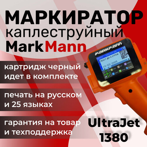 MarkMann UltraJet 1380 поддерживает 26 языков, включая русский, и может печатать цифры, даты, символы, QR-коды и другие изображения. Он также оборудован двойной печатающей головкой и экраном 4,3 дюйма, что обеспечивает удобство использования и контроля над процессом маркировки.