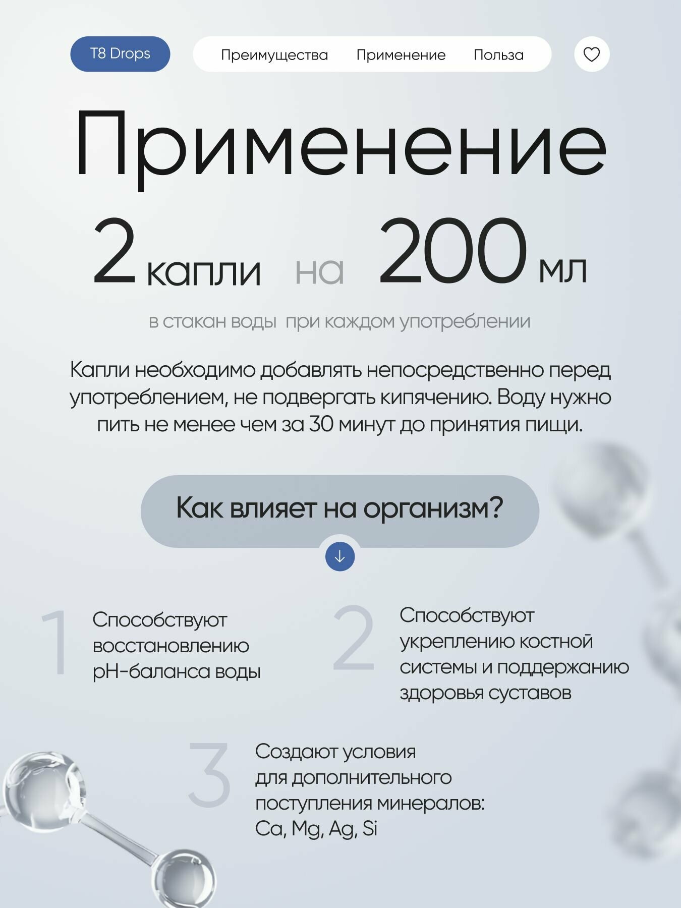 Капли для коррекции pH-баланса воды T8 DROPS VILAVI / Дропс Вилави Тайга 8, 15 мл