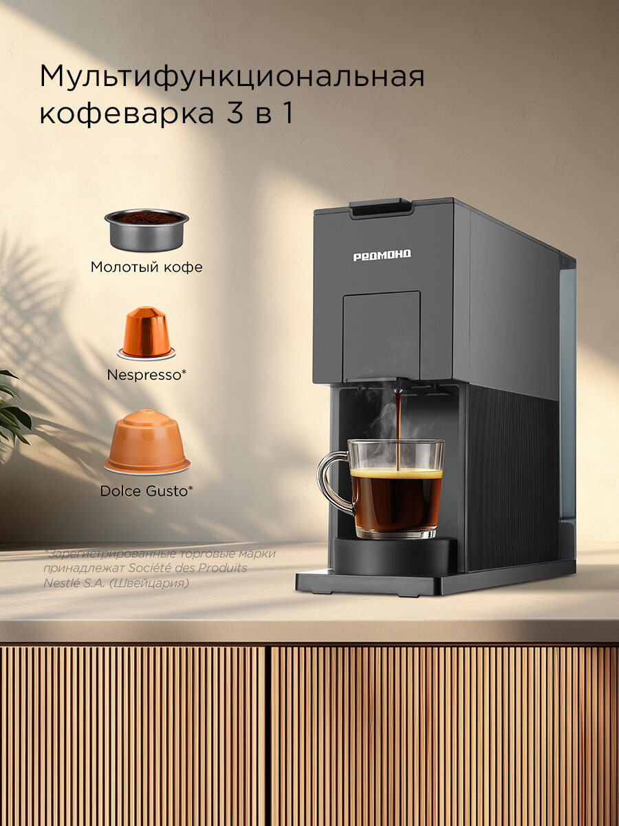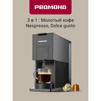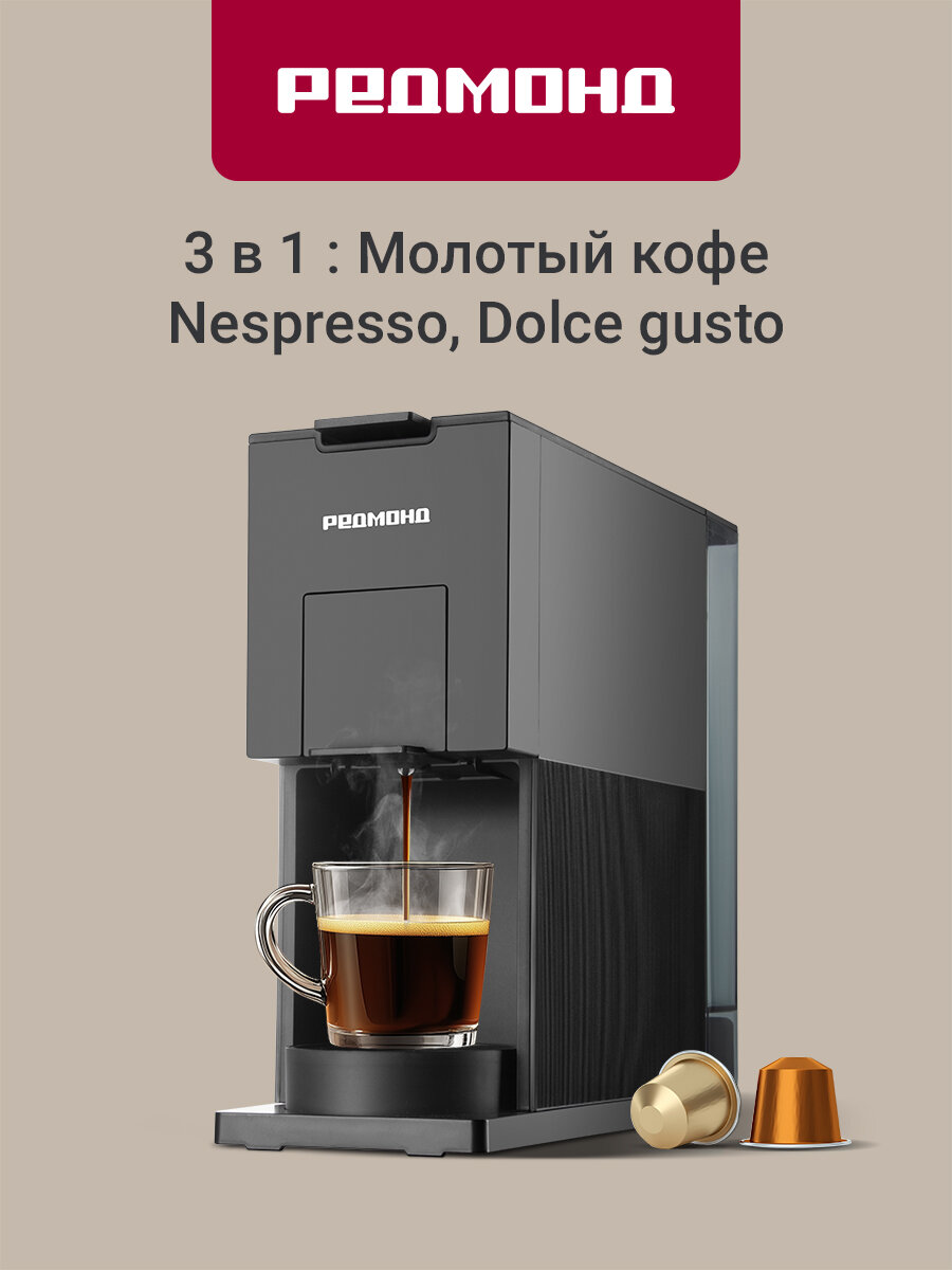 Капсульная кофеварка редмонд CM723, кофемашина, настройка объема порции, молотый, Nespresso, Docle Gusto, 900 мл, черная: сравнение цен, характеристики, фото, актуальное наличие и цены.