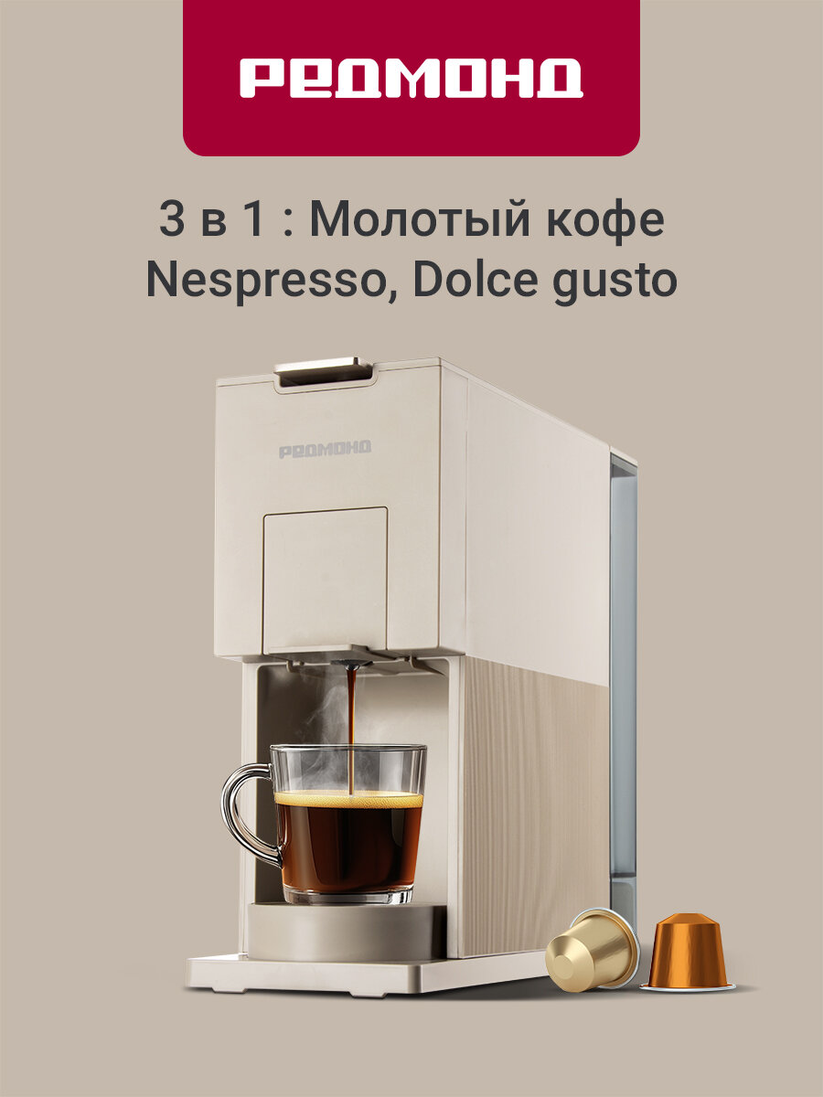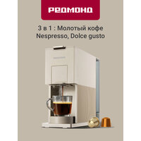 Капсульная кофеварка редмонд CM723, кофемашина, выбор объема порции, молотый, Nespresso, Docle Gusto, 900 мл, бежевая: сравнение цен, характеристики, фото, актуальное наличие и цены.