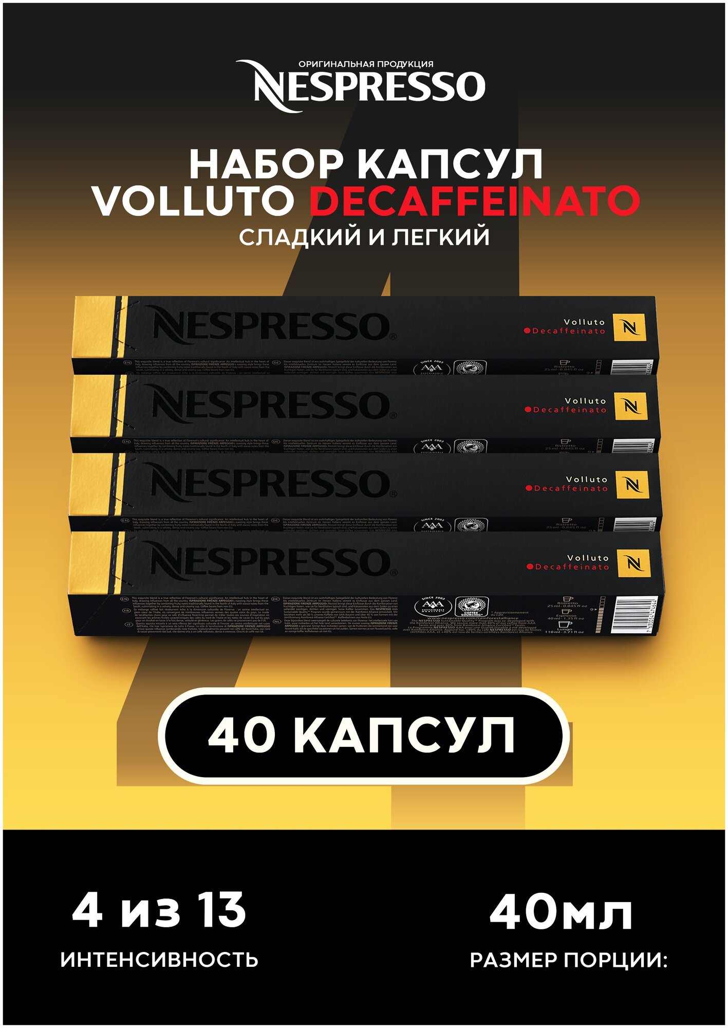 Капсулы для кофемашин Nespresso Original «Nespresso VOLLUTO DECAFFEINATO» 4 упаковки по 10 шт: сравнение цен, характеристики, фото, актуальное наличие и цены.