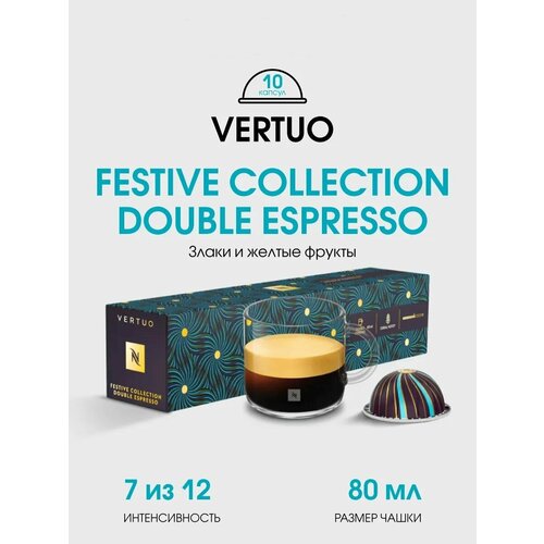 Nespresso Vertuo Festive Collection Double Espresso - восхитительное праздничное лакомство с нотками злаков , спелых фруктов и карамели, которые прекрасно дополняют тонкие двесные оттенки.