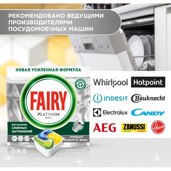 | Комплектация | Капсулы для посудомоечной машины Fairy Platinum |