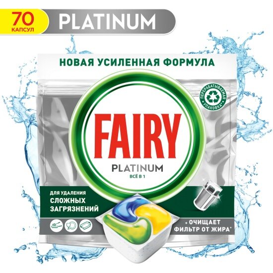 Капсулы для посудомоечных машин Fairy Platinum All in 1 Лимон, 70 шт: сравнение цен, характеристики, фото, актуальное наличие и цены.