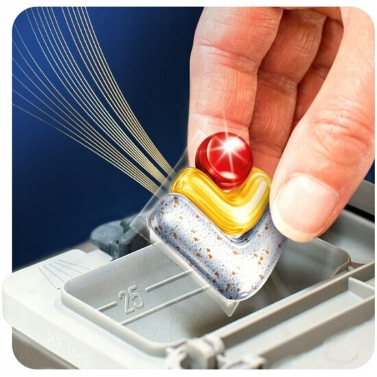 4. Поместите 1 капсулу в сухой отсек на 1 цикл мойки;