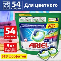 Капсулы для стирки Ariel 54 шт, для цветного, очищение и ароматизация, удаление пятен и загрязнений: сравнение цен, характеристики, фото, актуальное наличие и цены.