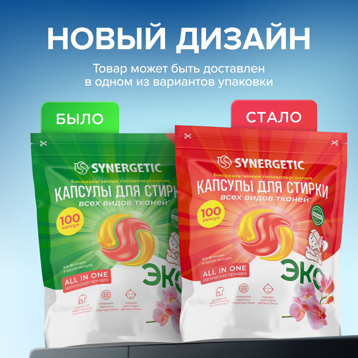 Капсулы для стирки Synergetic гипоаллергенные Color, биоразлагаемые,100 шт (комплект из 2 шт)