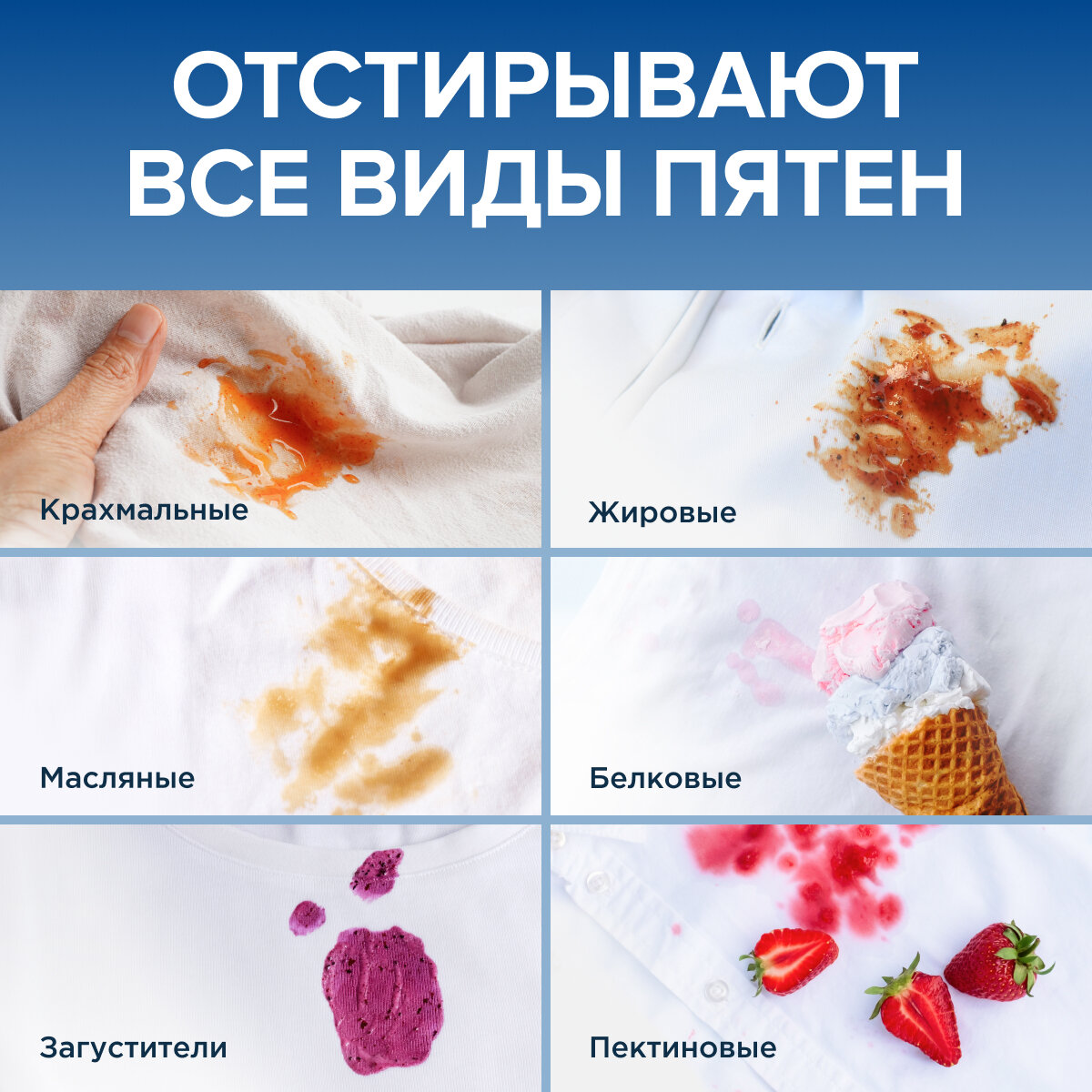 Комбинация энзимов и растительных ПАВ эффективно удаляет загрязнения и свежие пятна с волокон ткани даже в холодной воде. Функциональные добавки предотвращают окрашивание ткани, сохраняя её первоначальный вид, насыщенность цвета, прочность и структуру. Капсулы содержат гипоаллергенную отдушку с эфирными маслами эвкалипта и апельсина.