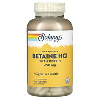 Купить Solaray, высокоэффективный бетаина гидрохлорид с пепсином, 650 мг, 250 вегетарианских капсул с доставкой по всей России.