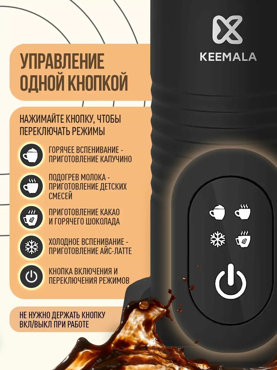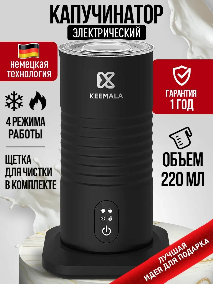 Капучинатор электрический - просто необходимый атрибут на кухне любого кофемана! Вспениватель молока за считаные секунды превратит молоко в густую и пышную пенку, благодаря которой ваш кофе будет просто неповторимым. Капучинатор и вспениватель для молока имеет 4 режима работы: горячее вспенивание, подогрев, приготовление какао и холодное вспенивание.