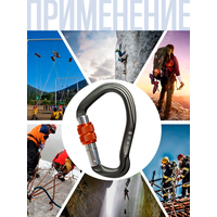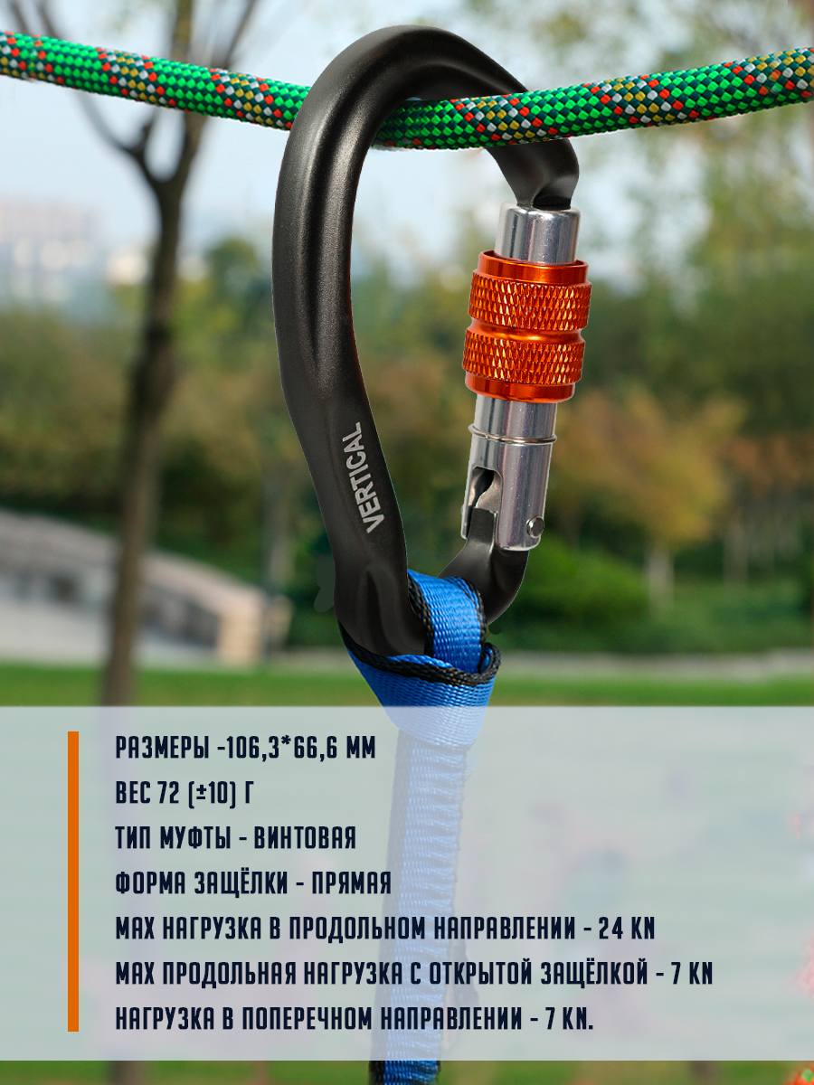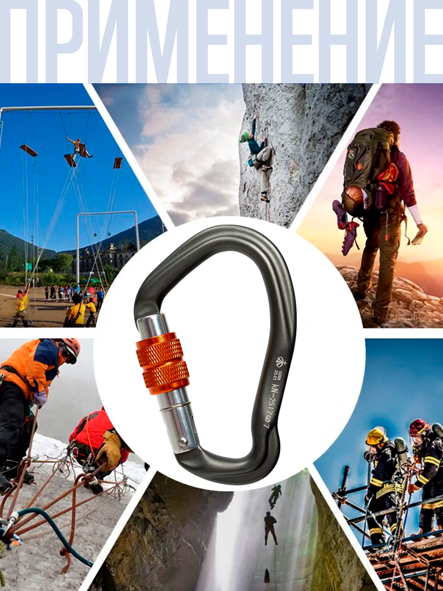 Убедитесь в совместимости карабинов с другими элементами страховочной цепи. Совместимость означает правильное взаимодействие и расположение: например, взаимодействие с подключаемыми устройствами, правильное приложение нагрузки на карабин и т.д. Несовместимость может привести к непроизвольному выстегиванию или разрушению карабина или других элементов страховочной цепи.