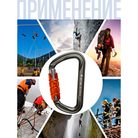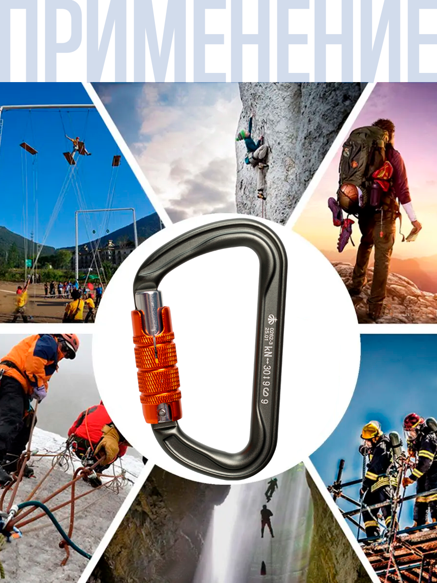 Убедитесь в совместимости карабинов с другими элементами страховочной цепи. Совместимость означает правильное взаимодействие и расположение: например, взаимодействие с подключаемыми устройствами, правильное приложение нагрузки на карабин и т.д. Несовместимость может привести к непроизвольному выстегиванию или разрушению карабина или других элементов страховочной цепи.