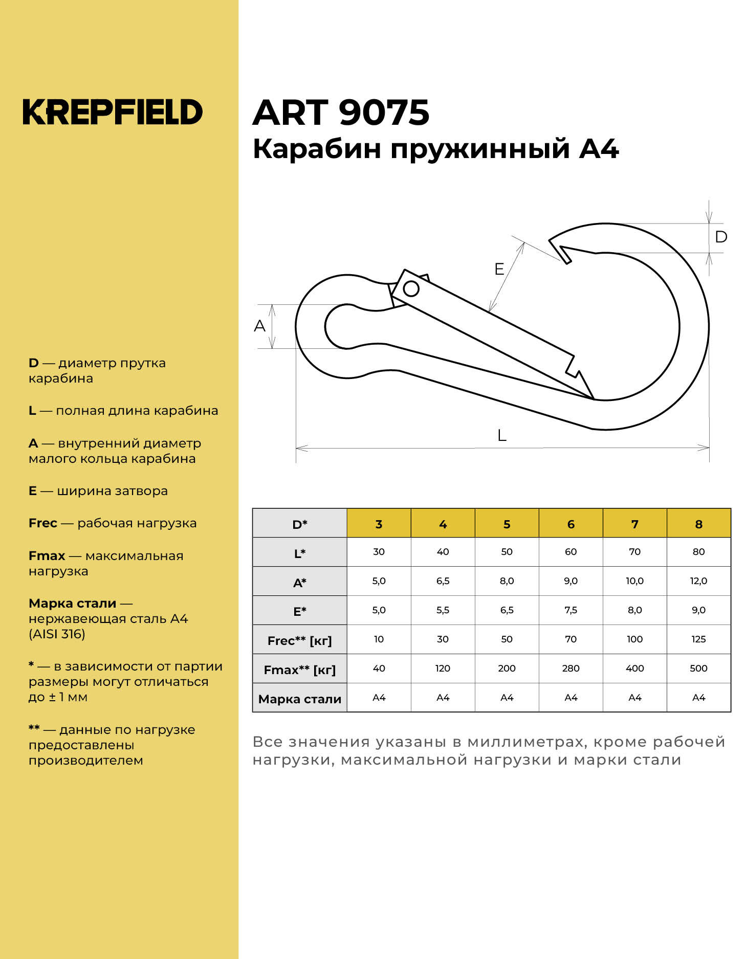 Карабин Нержавеющий 4х40 ART 9075 А4 пружинный 4 шт.: сравнение цен, характеристики, фото, актуальное наличие и цены.