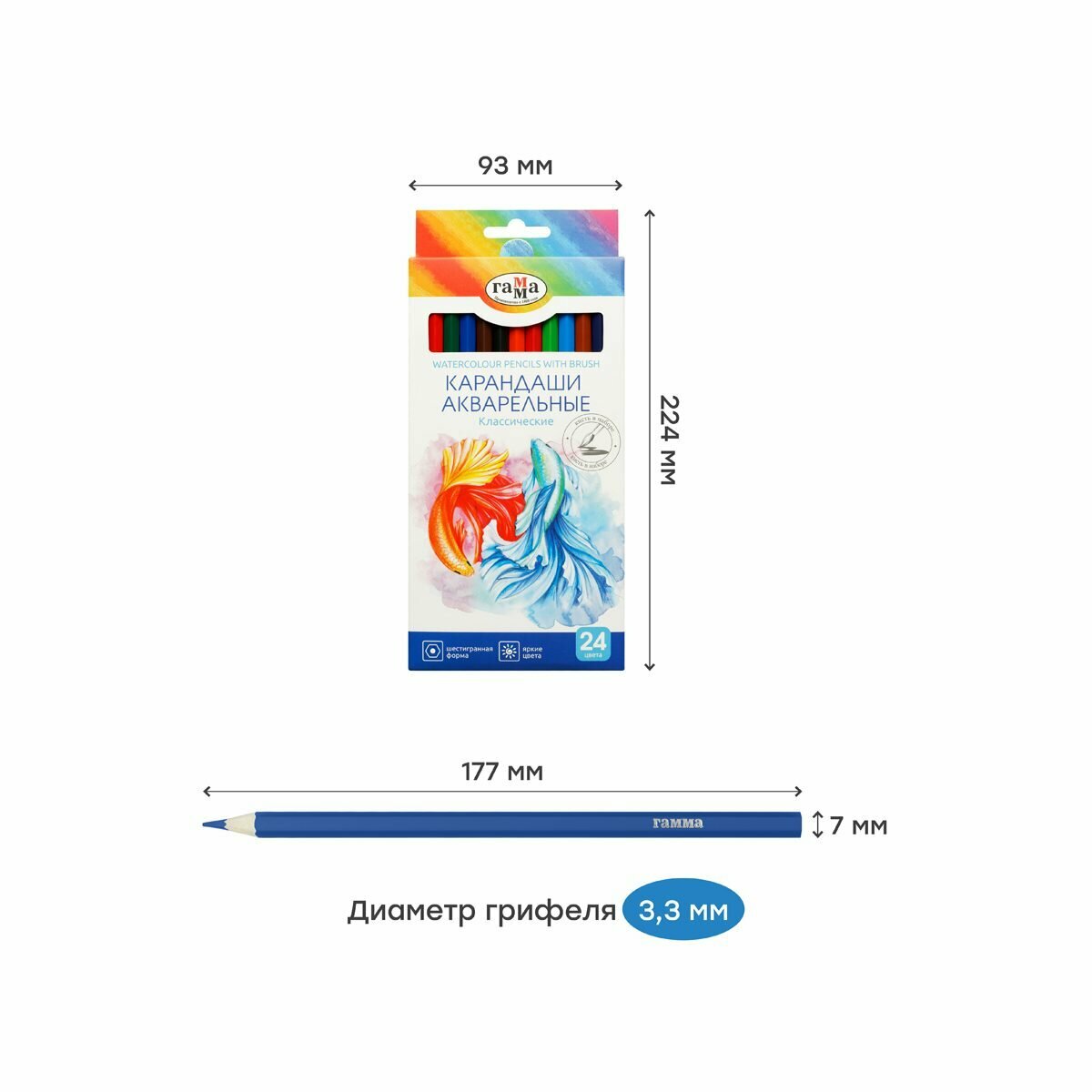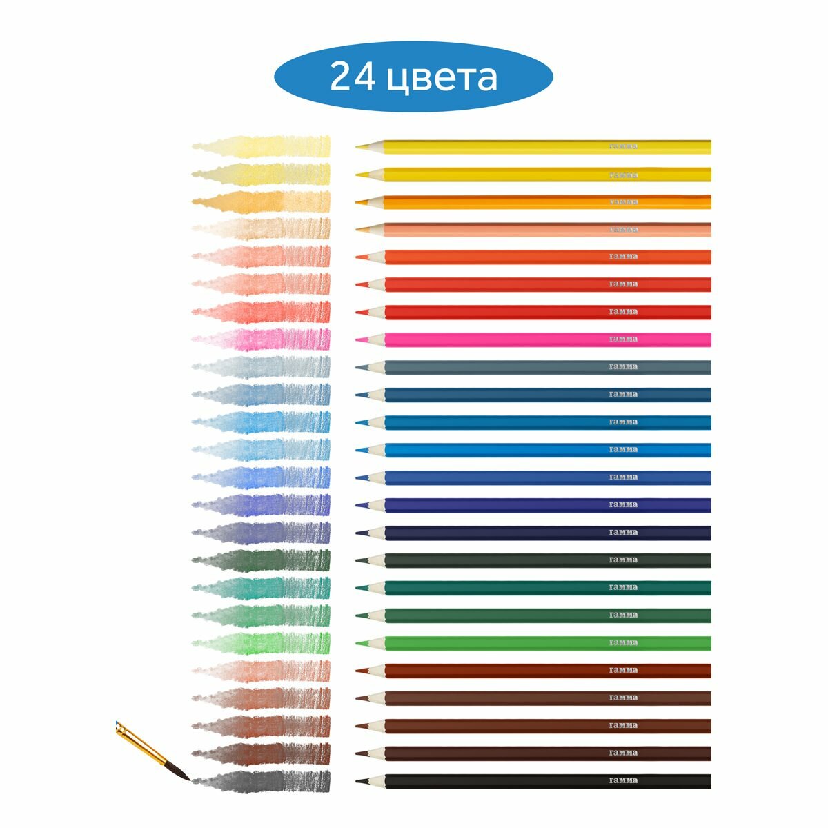 Карандаши акварельные 24 цвета Гамма «Классические» (d=3.3мм, 6гр, с кистью) картон (221118_04_04), 6 уп.: сравнение цен, характеристики, фото, актуальное наличие и цены.
