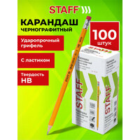 Карандаш чернографитный с ластиком Staff Everyday Blp-724, Нв, Комплект 100 штук, корпус желтый, 880432: сравнение цен, характеристики, фото, актуальное наличие и цены.