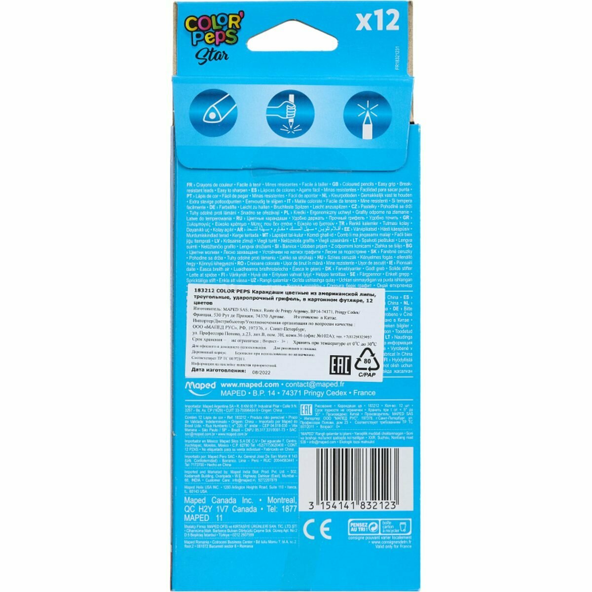 Карандаши цветные 12 цветов Maped Color’Peps (L=177мм, D=7мм, d=2.9мм, 3гр) картонная упаковка (183212), 12 уп.: сравнение цен, характеристики, фото, актуальное наличие и цены.